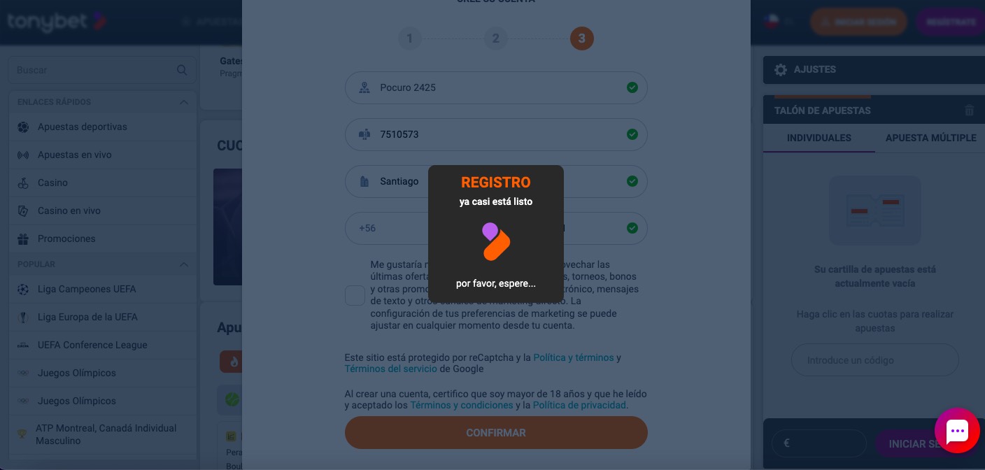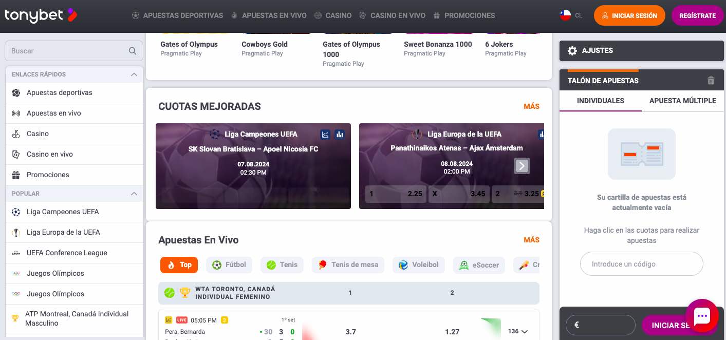 Así es, Tonybet está operativo en Chile.